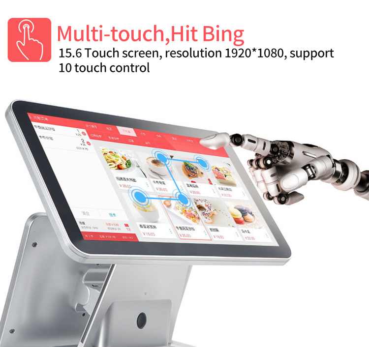 Android Windows Dual Screen POS System 15.6 Inch Touch Screen Cash Register